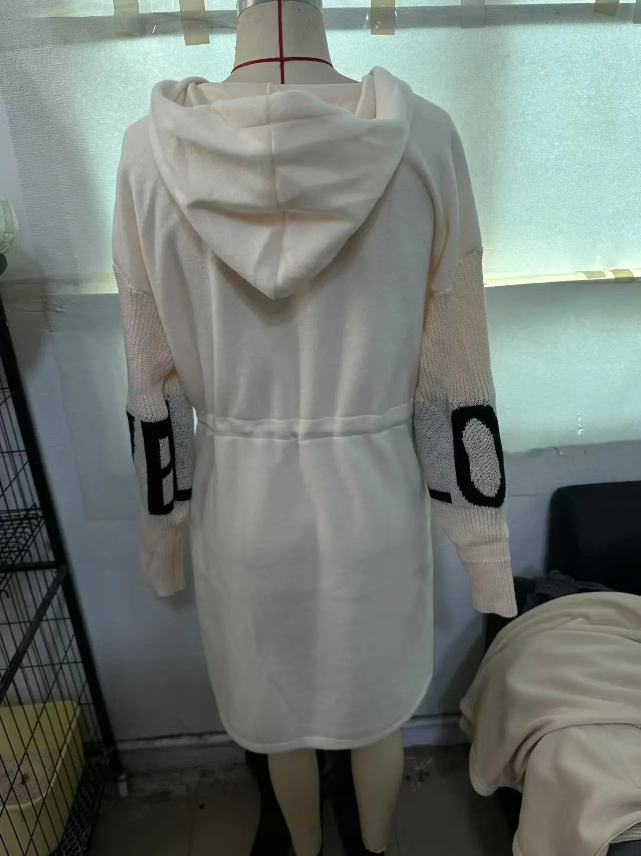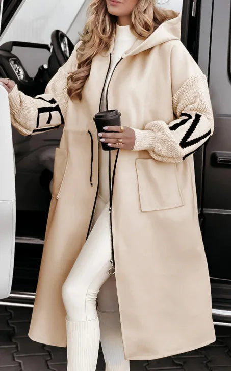 Fashion Oversized Winter Coats Zipper Up Loose Fit Knitted Sweater Long Sleeve Coats Hooded Streetwear Patchwork Trench
